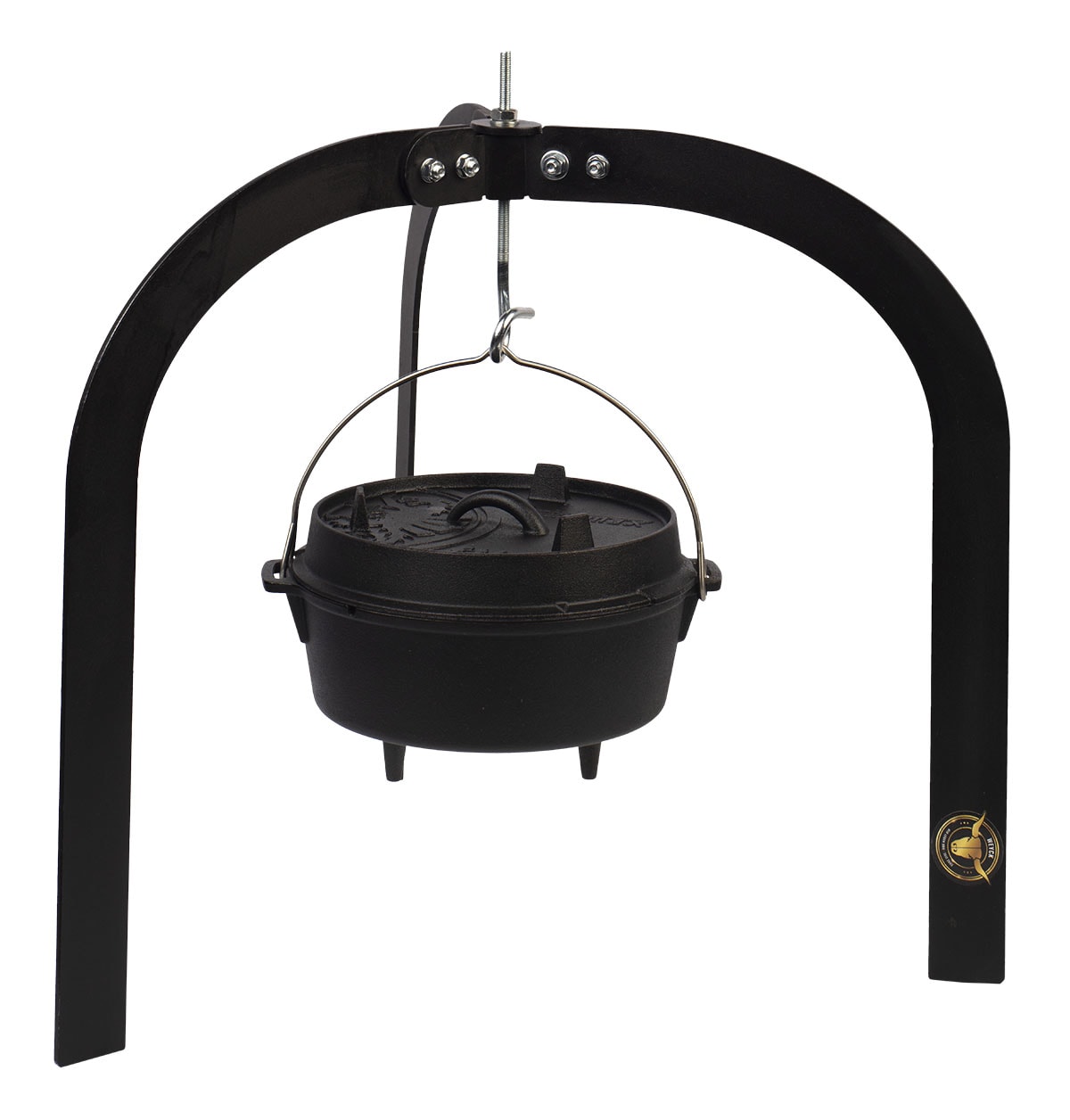 Beleef het ‘dutchen’ op een heel nieuw niveau met ons driepootstatief voor Dutch ovens op vuurplaten!