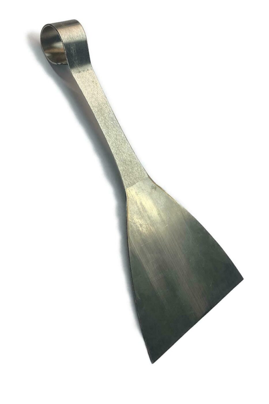 Onze grillspatel / show-spatel is perfect geschikt voor vuurplaten.
