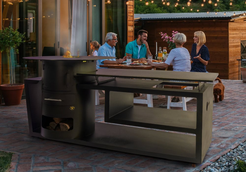 - Met een geïntegreerd houtvak zorgt de buitenkeuken altijd voor orde en is het brandhout altijd binnen handbereik.